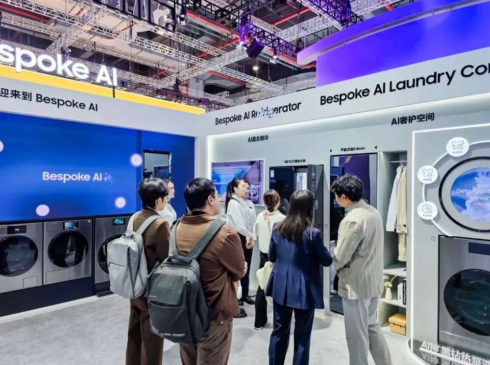 BespokeAI展区,AI神冰箱9系采用智能压缩机与半导体制冷技术的双动力源,控温稳定高效,可识别37种新鲜食材,9英寸AI智控大屏支持声触双控开门;AI神黑钻热泵洗烘旗舰实现“洗烘一键完成”。“这些产品让生活变的太方便了”,一位参观者在听了介绍后表示。