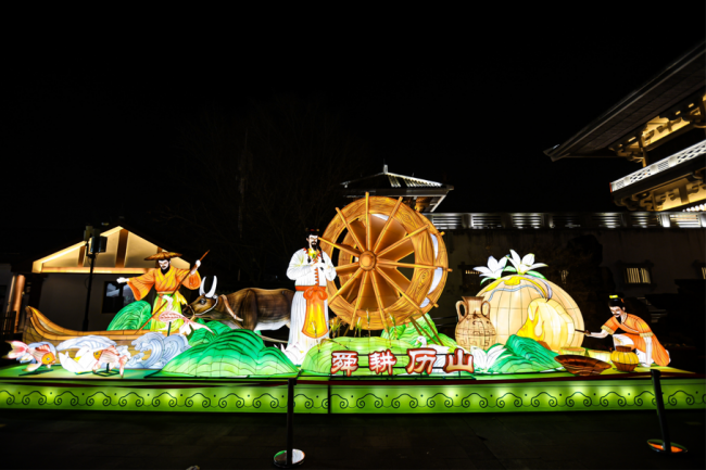 当晚的中华孝德园化身为梦幻体验空间,曹娥灯会是其中最亮丽的风景线。国家级非遗自贡“盐龙灯”技艺与本地民俗巧妙融合,“骏影流光”主题灯组气势磅礴,“孝女曹娥”灯组温情感人,“凤求凰”灯组浪漫唯美……流光溢彩中,千年文脉与新春喜庆一同闪亮。