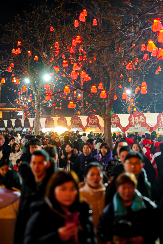 “带孩子来看灯,就像走进了光影故事书,不仅感受到现场热闹的新年氛围,还能充分体味到浓郁的本地文化。”市民陈先生一边用手机记录璀璨灯影,一边赞叹。现场,像他一样携带家人一起来的游客络绎不绝,不少年轻人也结伴而来。大学生小顾举着刚买的马年文创灯笼,在“凤求凰”灯组前打卡留念。